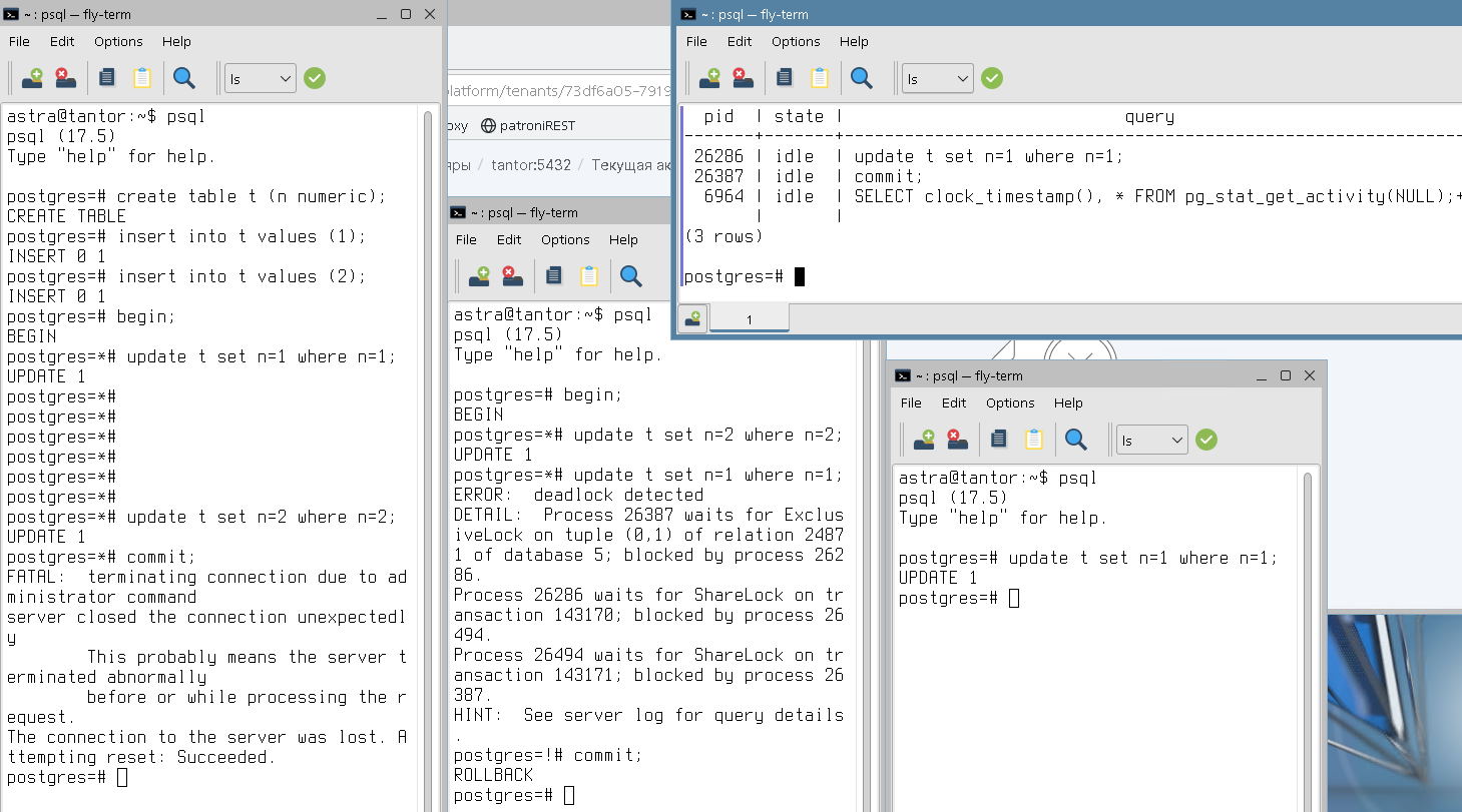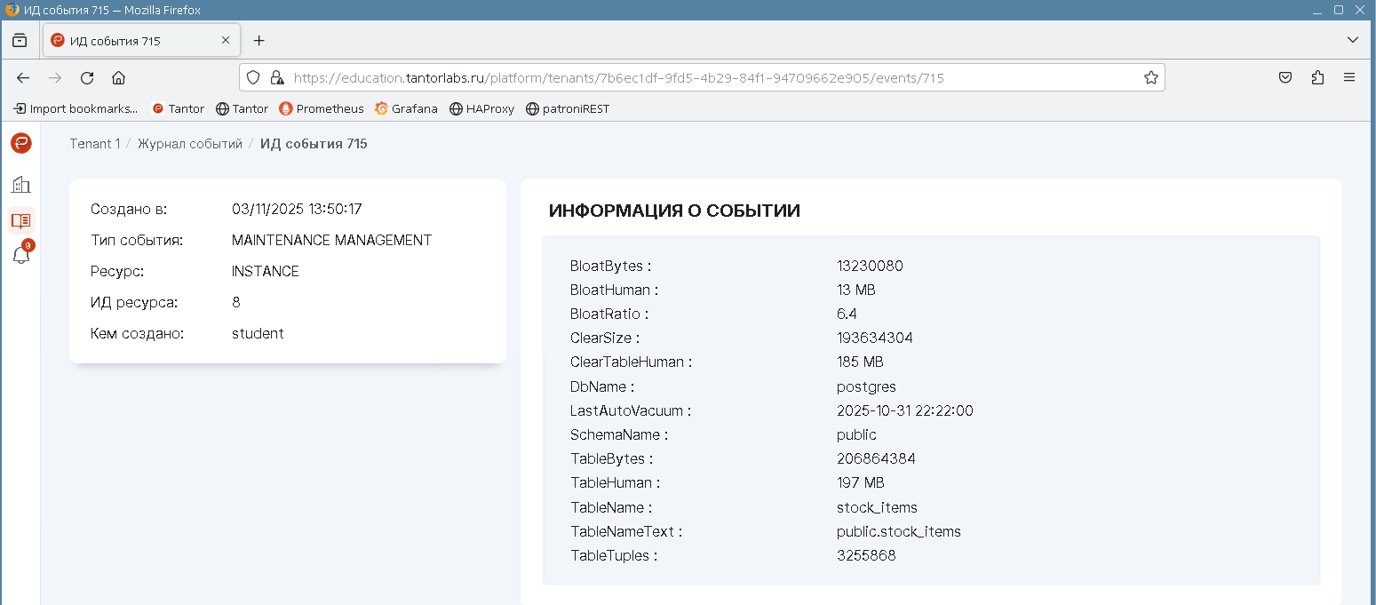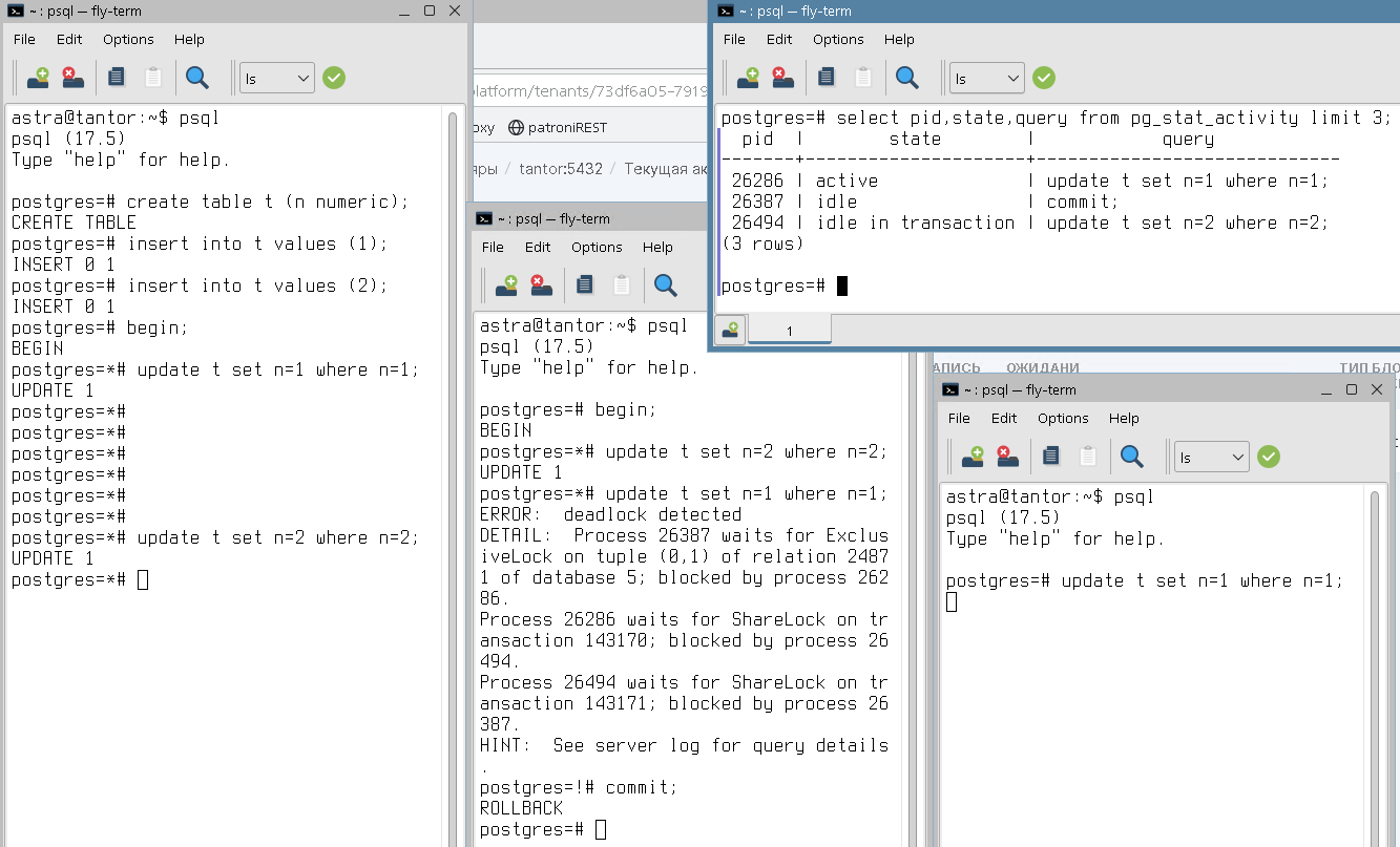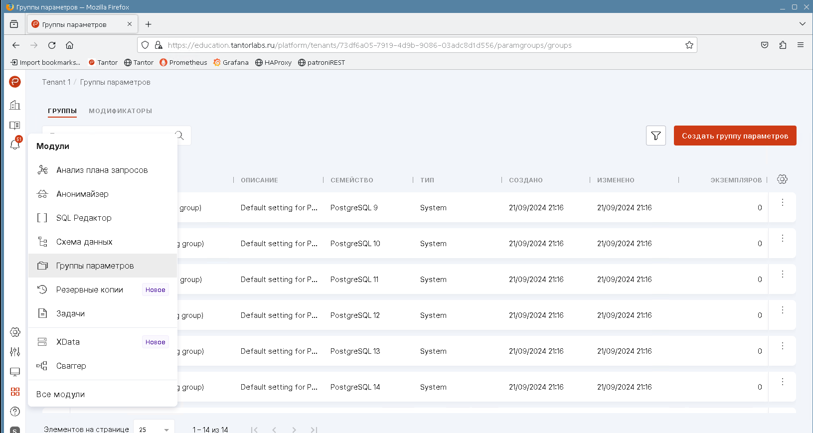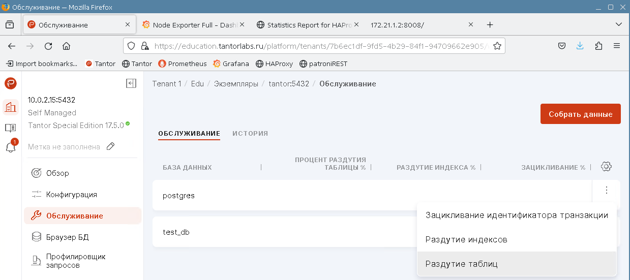 В Tenant 1 имеется два экземпляра Tantor Postgres и три экземпляра PostgeSQL.