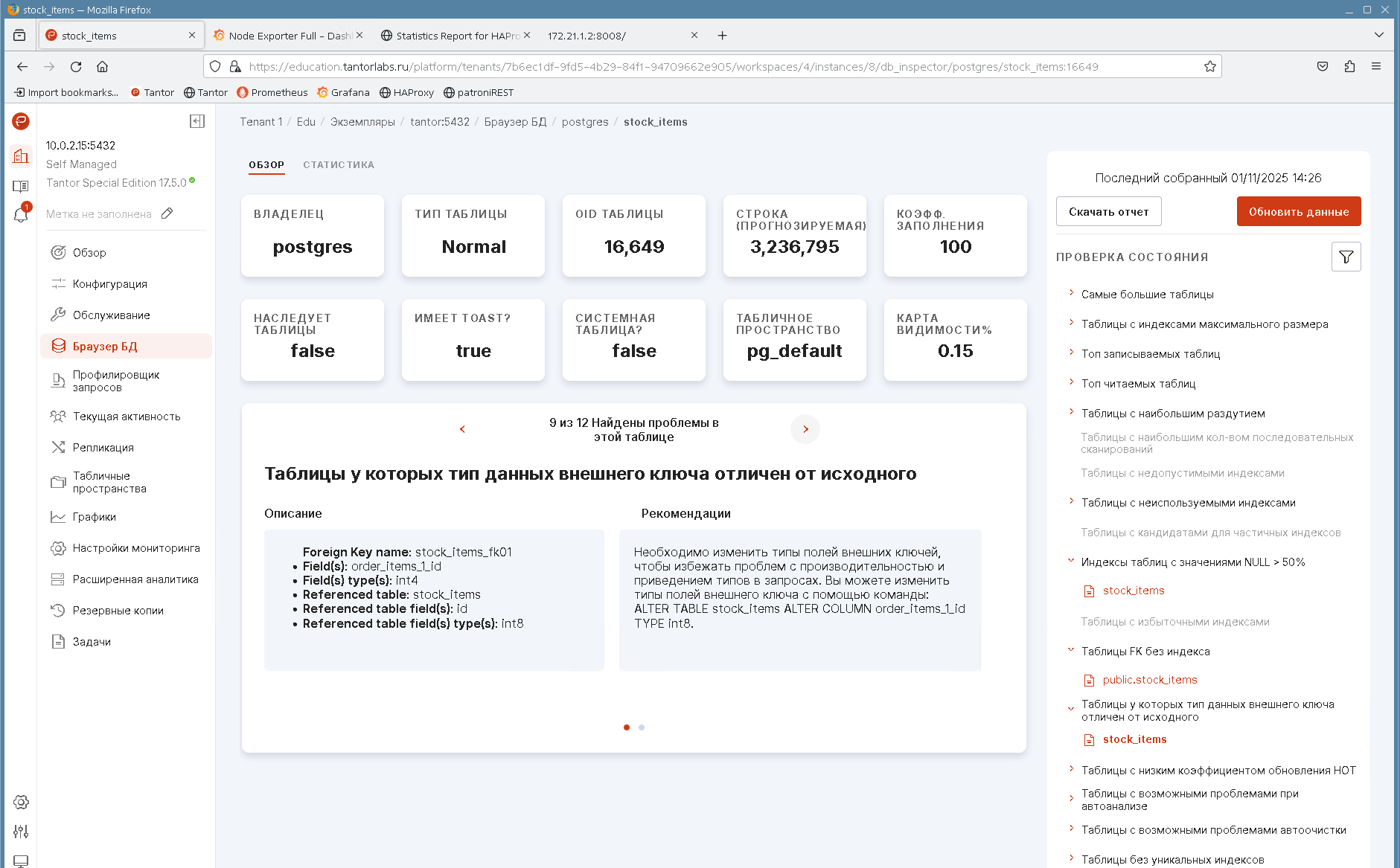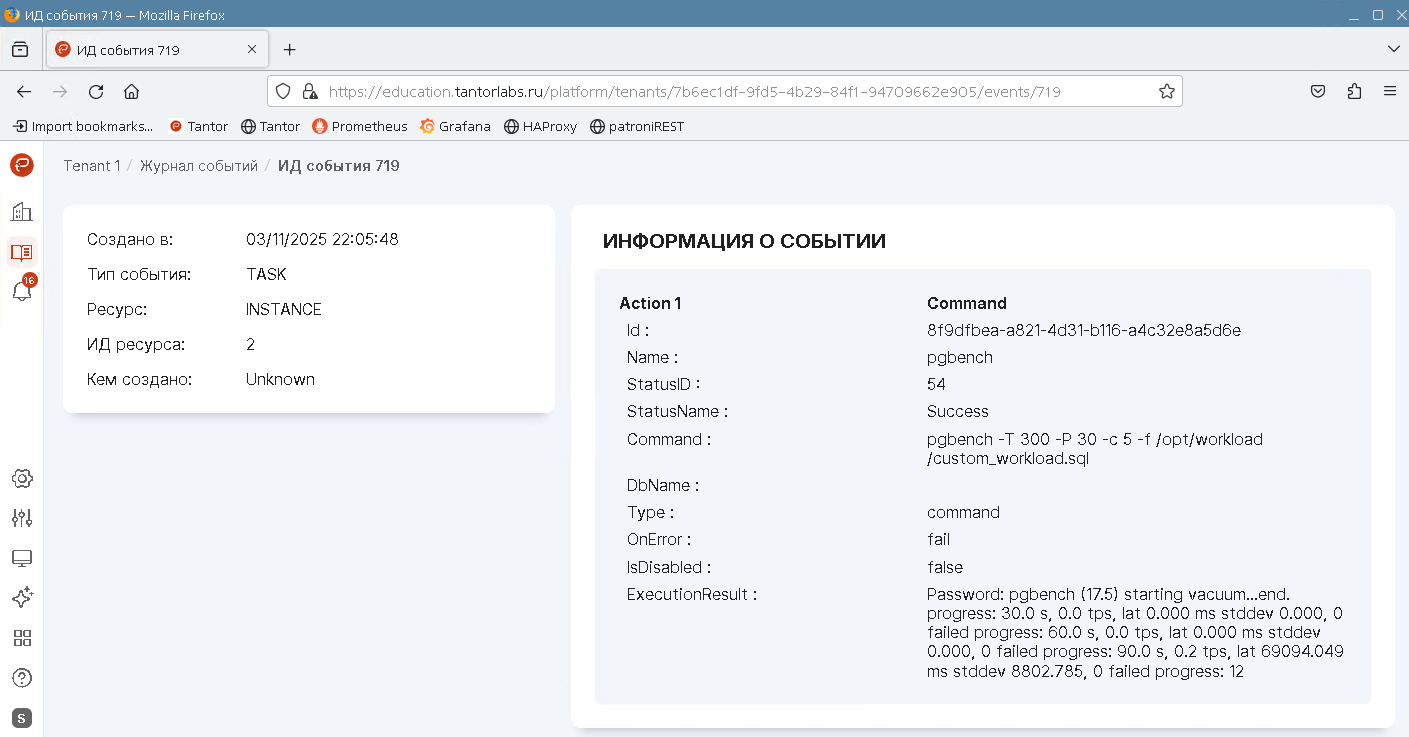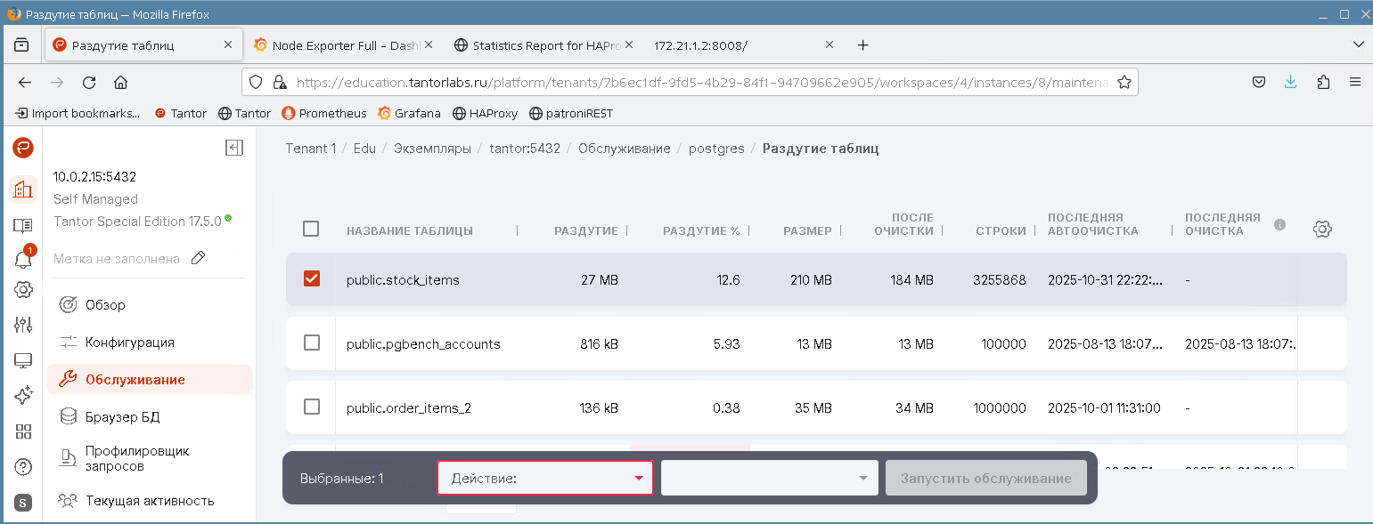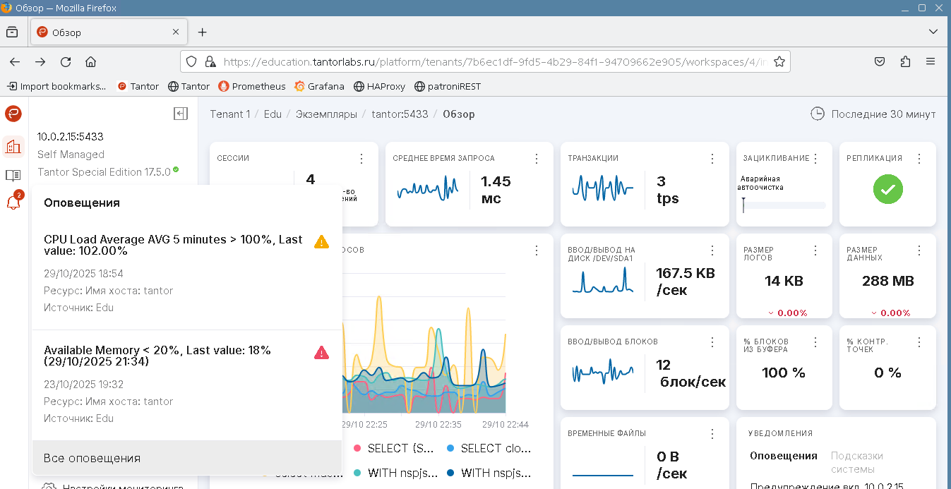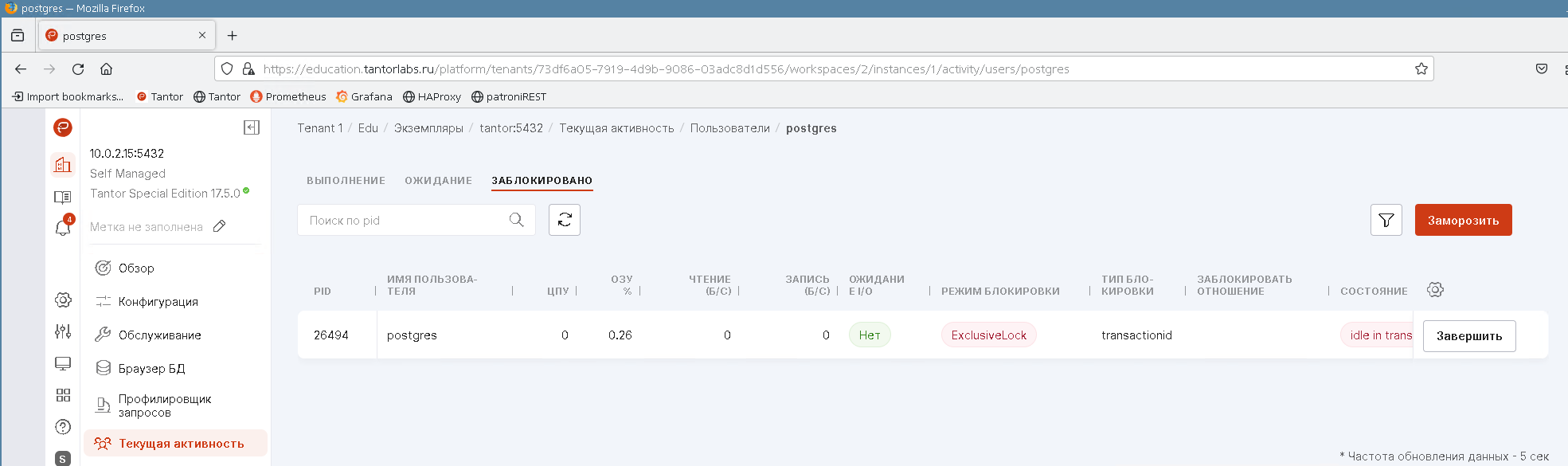 Для проверки того, что рабочие процессы подсоединяются, можно открыть страницу в браузере: https://education.tantorlabs.ru/pg-monitor/hosts