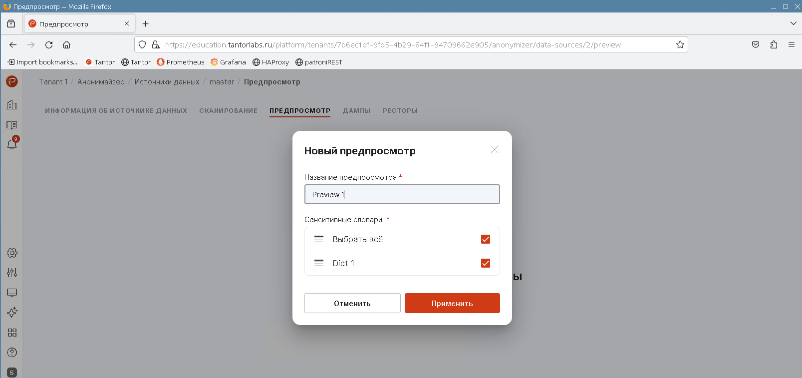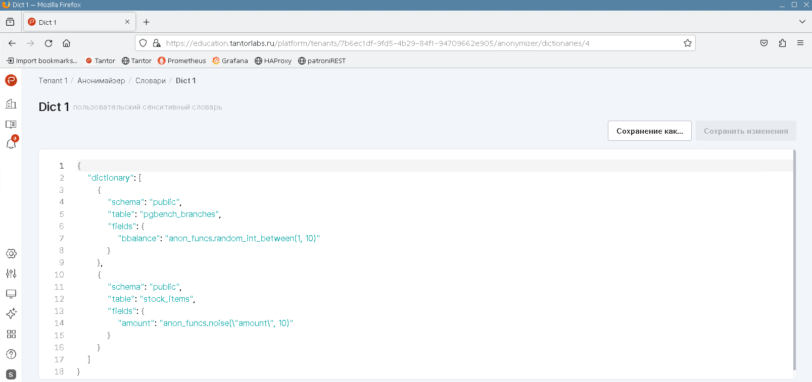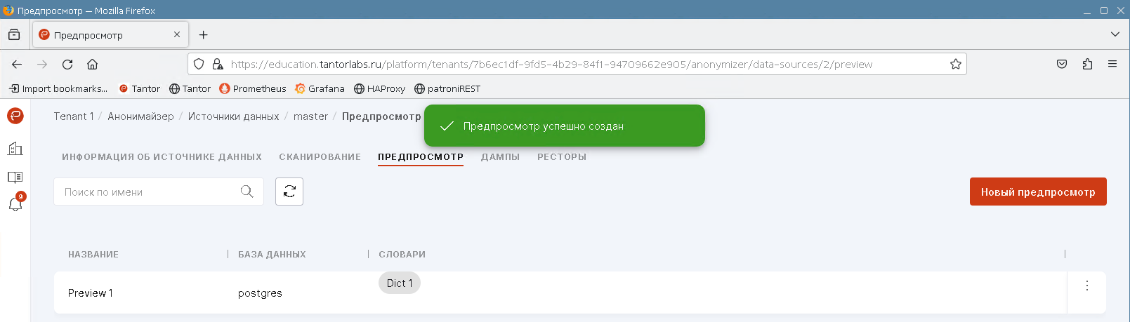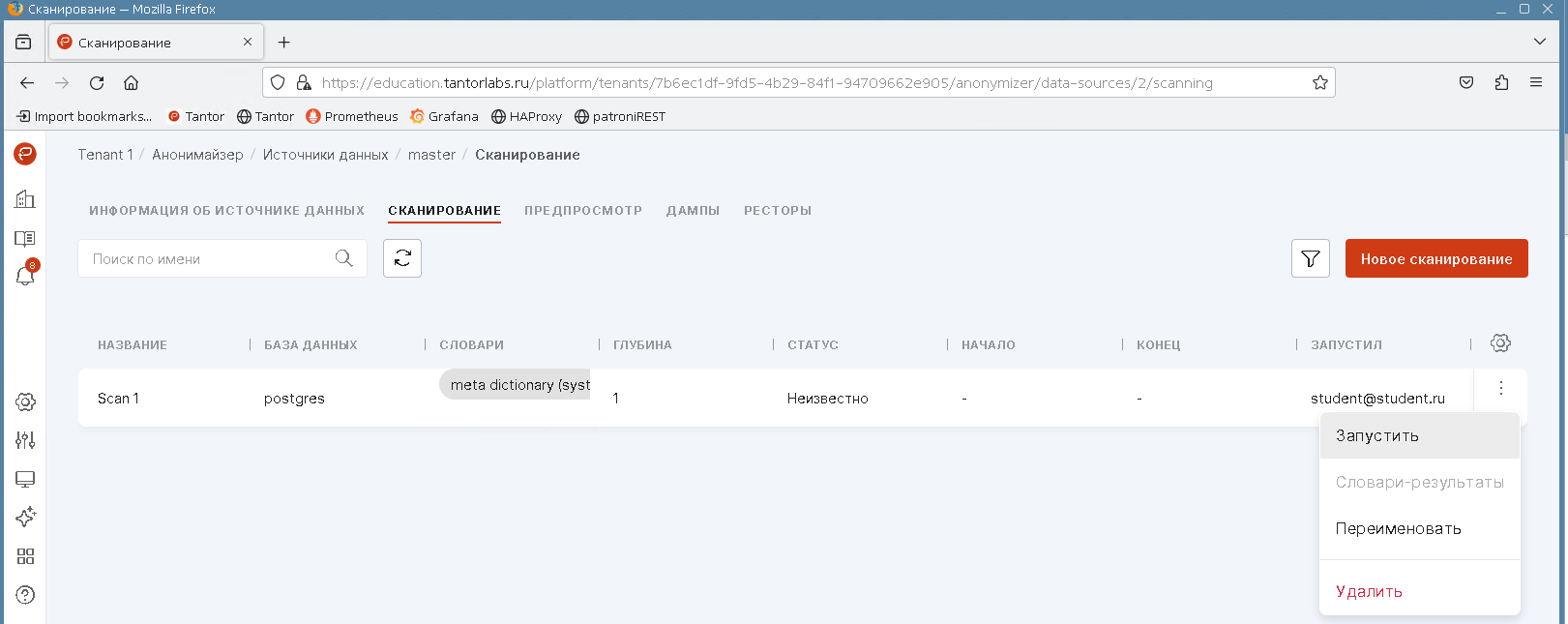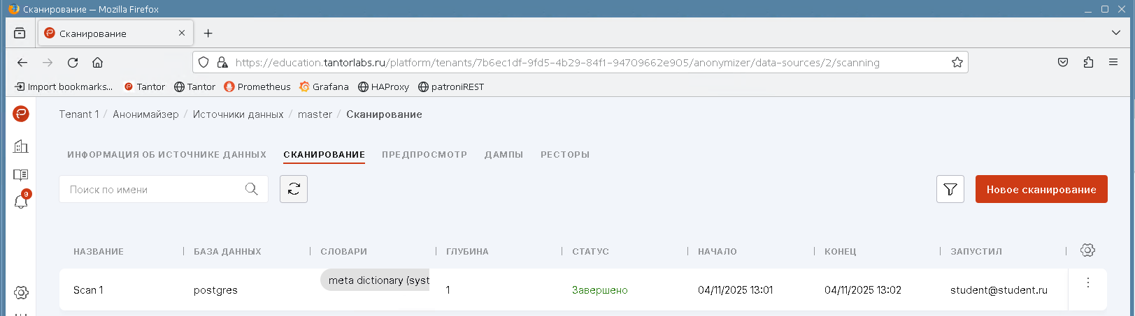 4) Откройте страницу Расширенной аналитики. Для этого в браузере откройте Tenant 1 -> Edu -> 10.0.2.15:5432 -> Advanced Analytics