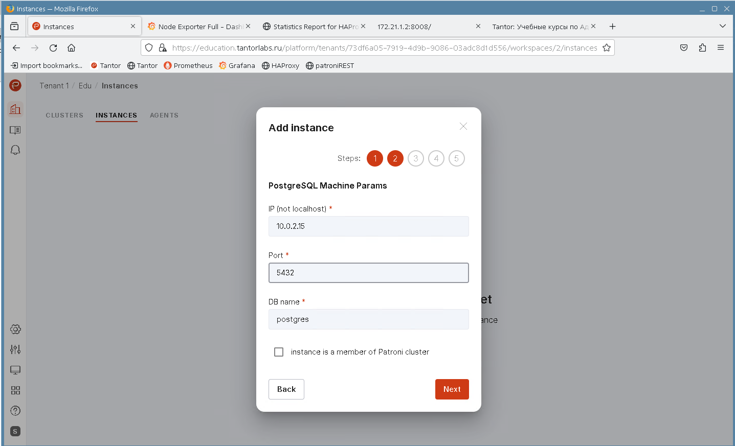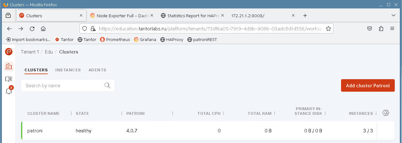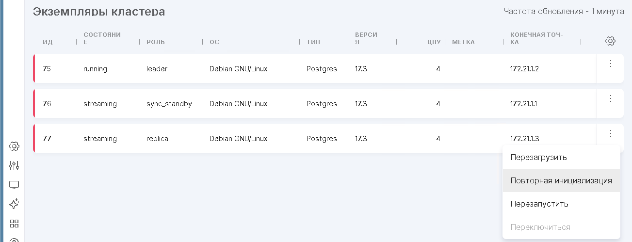 Аналогичным образом можно добавить экземпляры кластера Patroni - через веб-интерфейс или через командную строку.