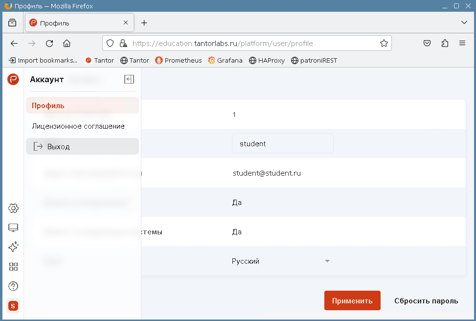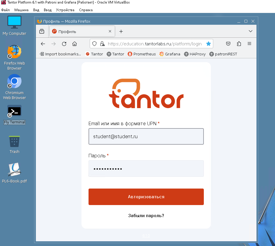2) Войдите в браузере Chromium в Платформу под dba1@dba1.ru/Student123!