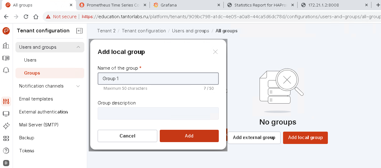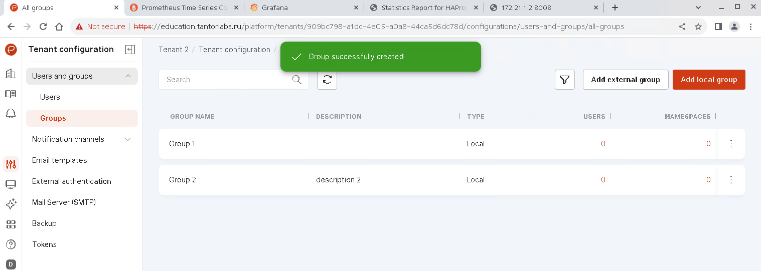 1) Для перехода на стартовую страницу Платформы кликните на логотип Тантор в левом верхнем углу страницы браузера. Откроется страница Тенанты. На странице нажмите красную кнопку Добавить тенант. Создайте новый тенант с названием Tenant 2: