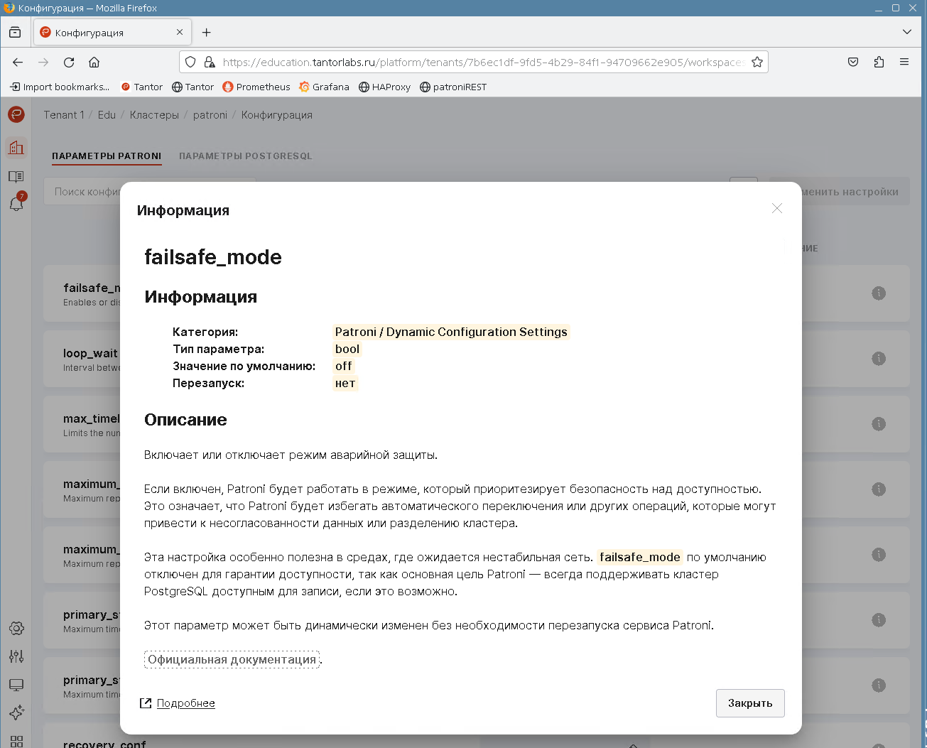 docker exec -it -u root docker-patroni1-1 /var/lib/pma/agent/pmaagent register --access-token 'токен' --host '172.21.1.1' --workspace-name 'Edu' --endpoint 'education.tantorlabs.ru:4222'